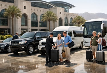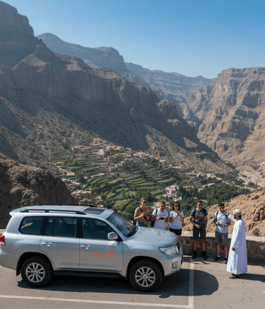 The services we provide, airport and port transfers, luxury chauffeur rides, and group transportation across Muscat and all of Oman. They also offer customized city tours and full-day trips to popular destinations like Nizwa, Wadi Shab, Wahiba Sands, and Jabal Akhdar.